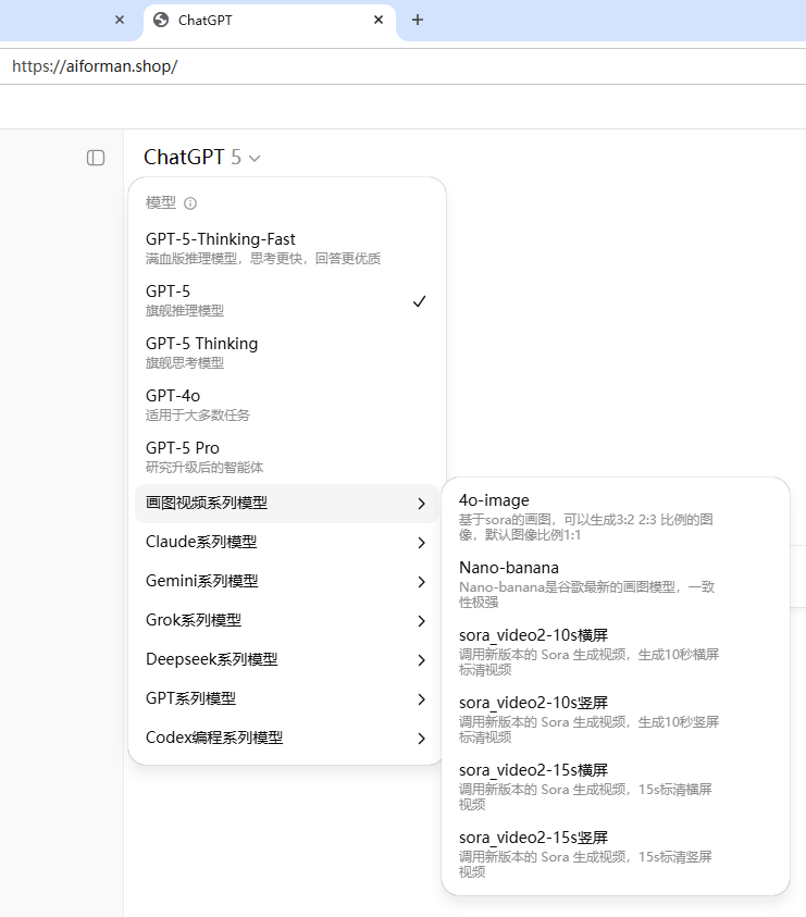 【1】GPT 5/4.0 & GPT4o不限次数,Gemini等模型可选备用入口使用